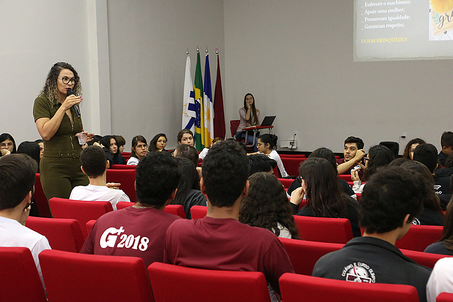 A aula para cerca de 300 estudantes dos 1º, 2º e 9º ano, com idade entre 15 e 17 anos, do Colégio Olimpo na Capital, foi bastante diferenciada na manhã desta terça-feira, 5. O aprendizado foi sobre machismo e violência doméstica e o conhecimento foi compartilhado pela defensora pública Franciana Di Fátima.